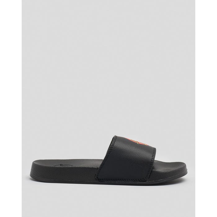 Tomaia 100% PU, suola 100% EVA, sandali slide on con logo serigrafato sulla tomaia, logo in rilievo sul plantare.