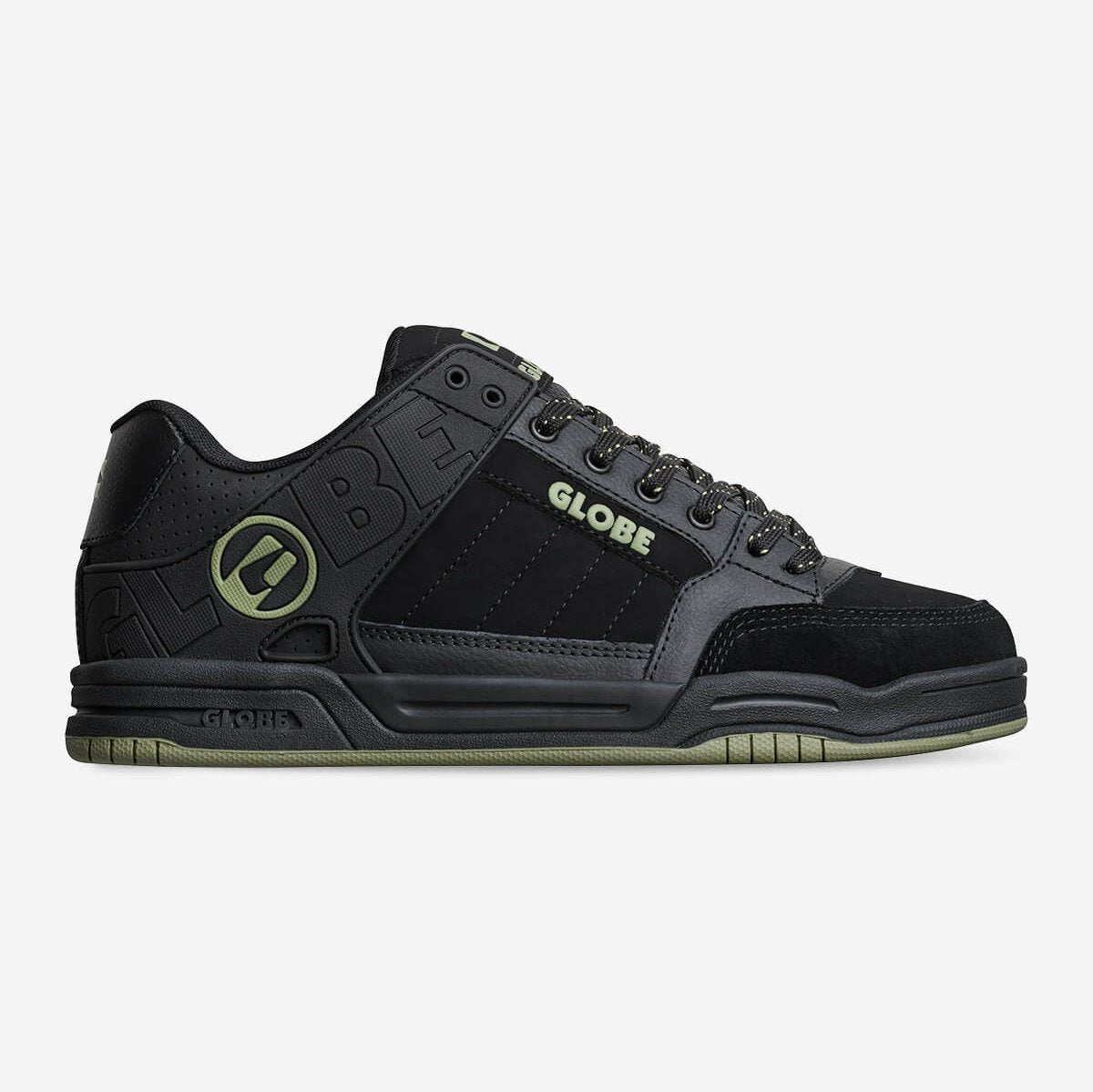 Il modello Tilt in nero/Olive è la classica silhouette skateboard di Globe, caratterizzata da un collare esterno in TPR sagomato per garantire supporto e durata e dal disegno della suola S-Trac™ per migliorare l'aderenza e la sensazione sulla tavola.