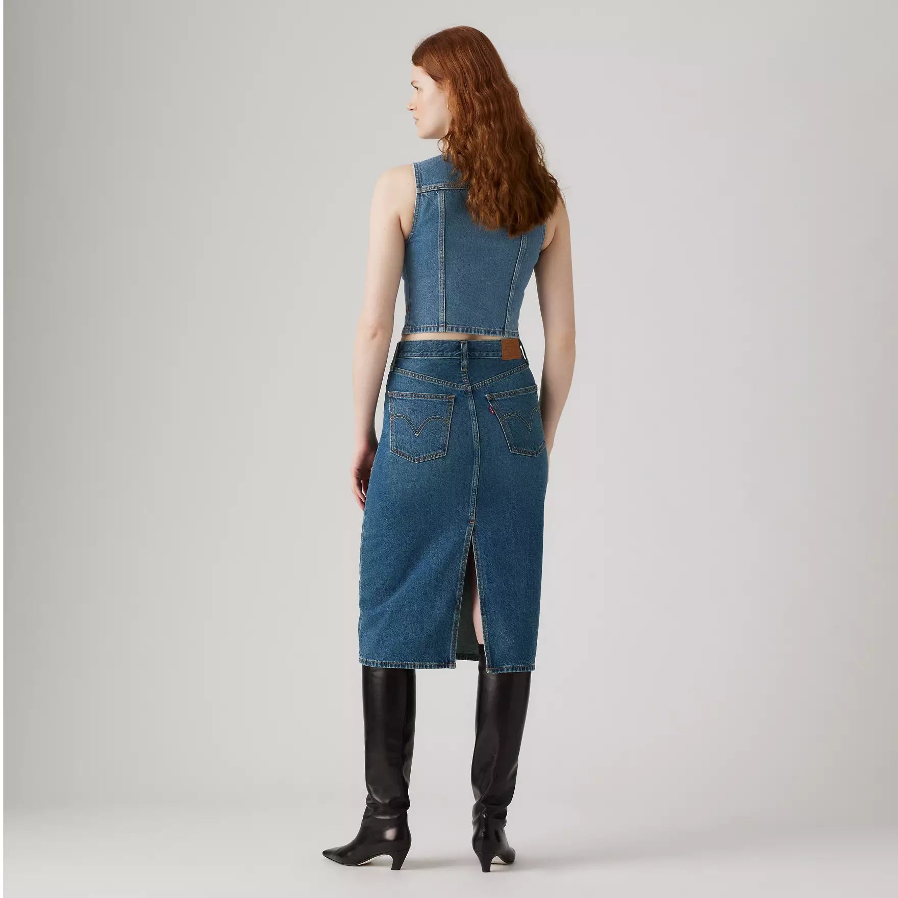 Una gonna di ispirazione vintage. La nostra gonna a vita alta con spacco posteriore ha un taglio che definisce il girovita, uno spacco posteriore e una vestibilità slim che valorizza la figura.